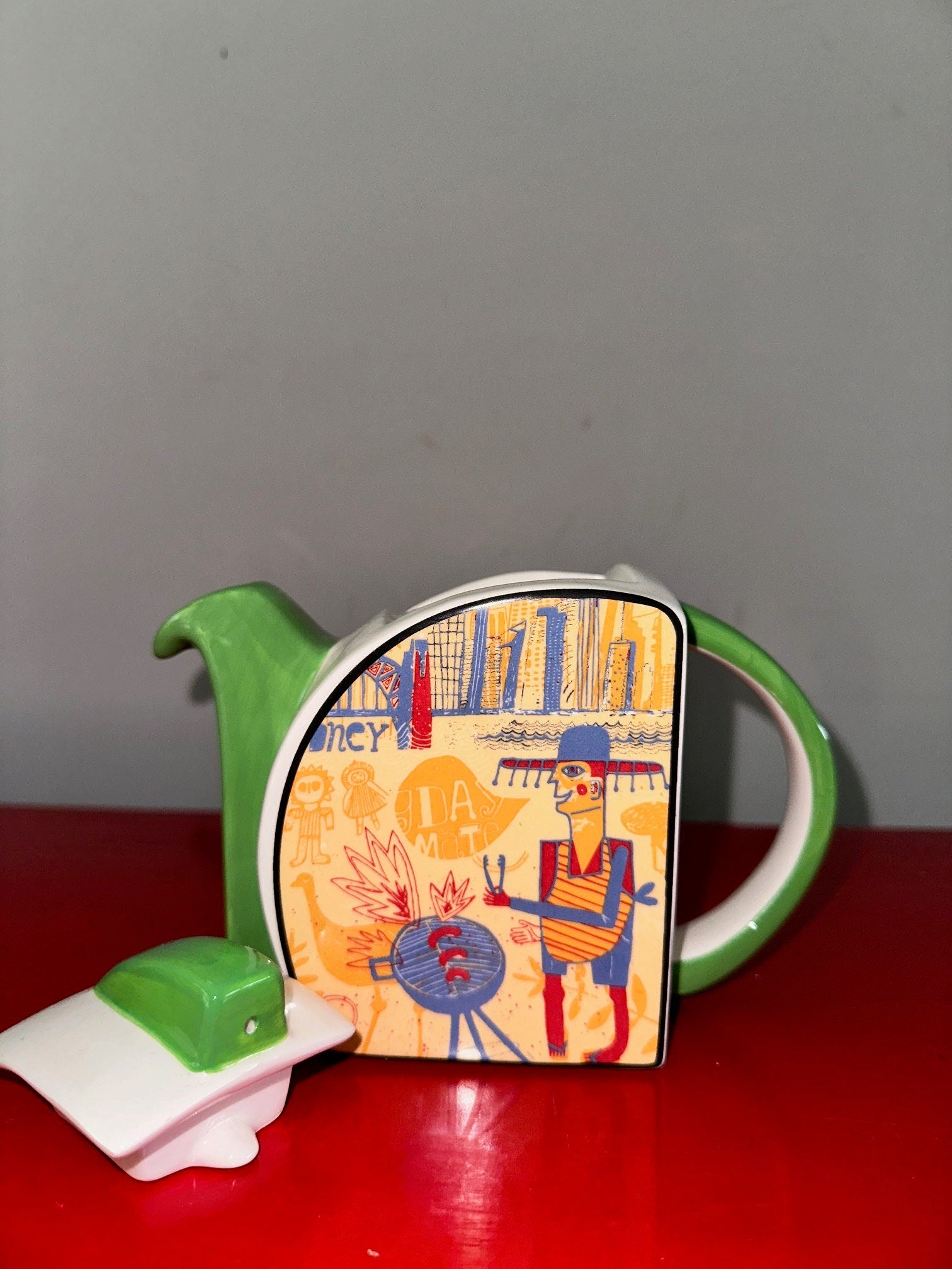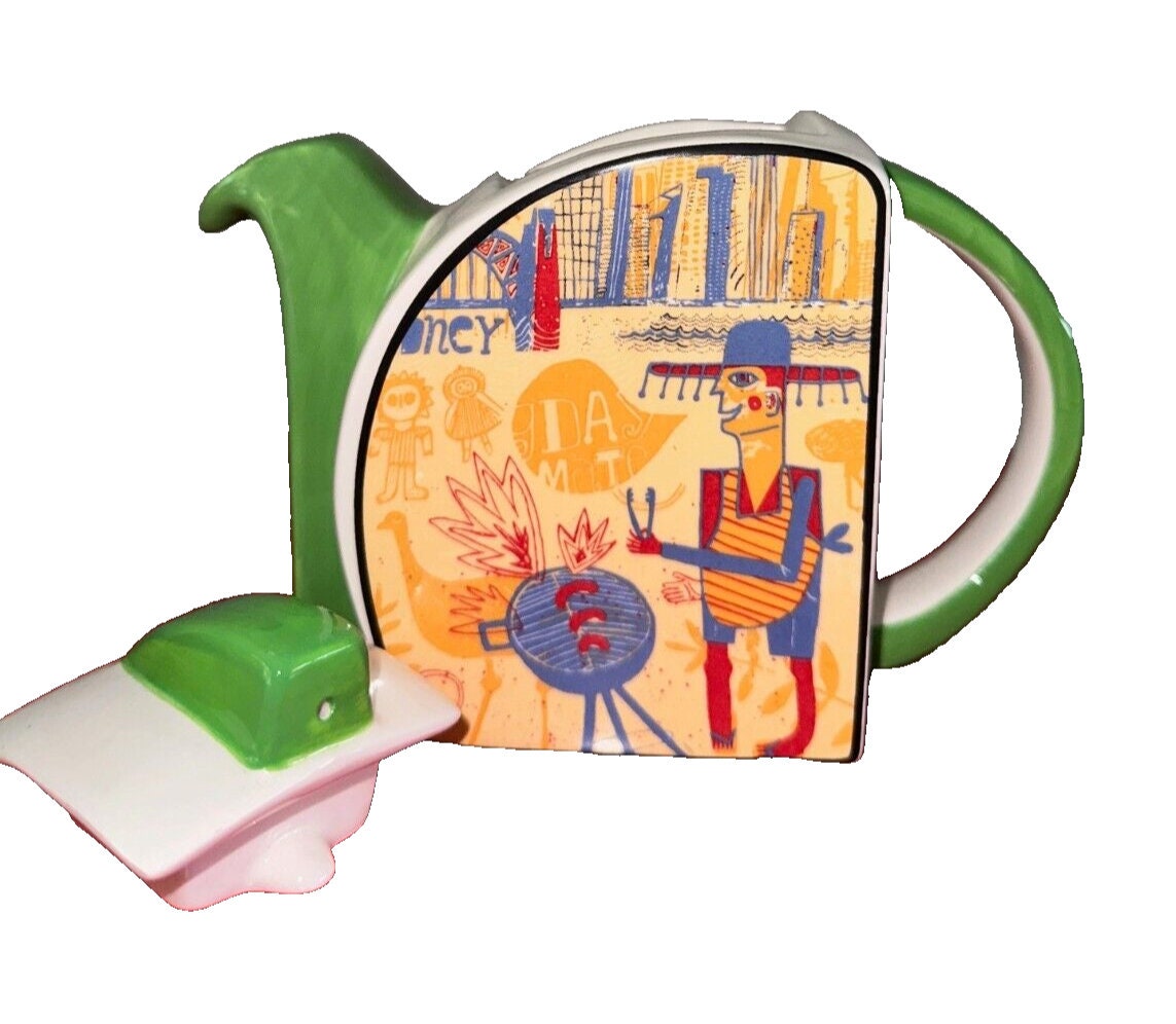 Aussie BBQ Teapot Clarice Cliff style NooroMason China Collectible