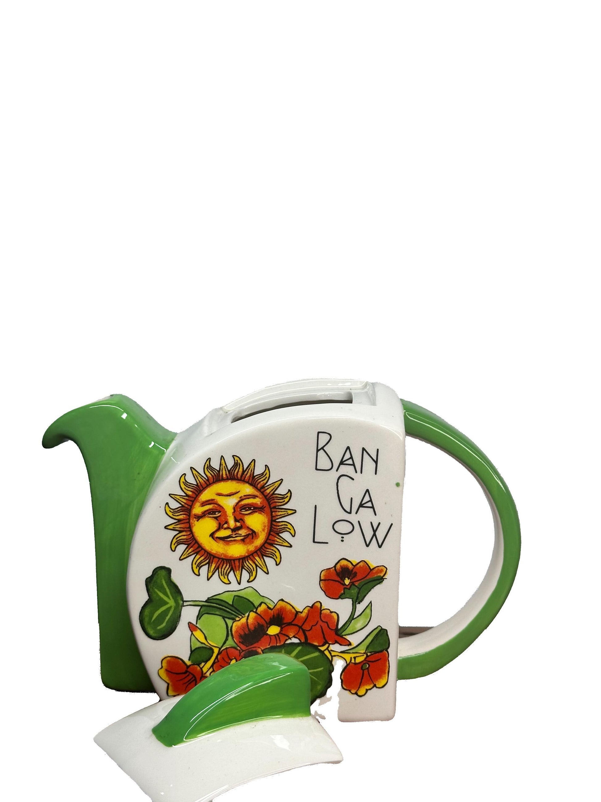 Celebrating the Byron Hinterland township of Bangalow this teapot is also available without the wording. Wording is on one side only as shown.