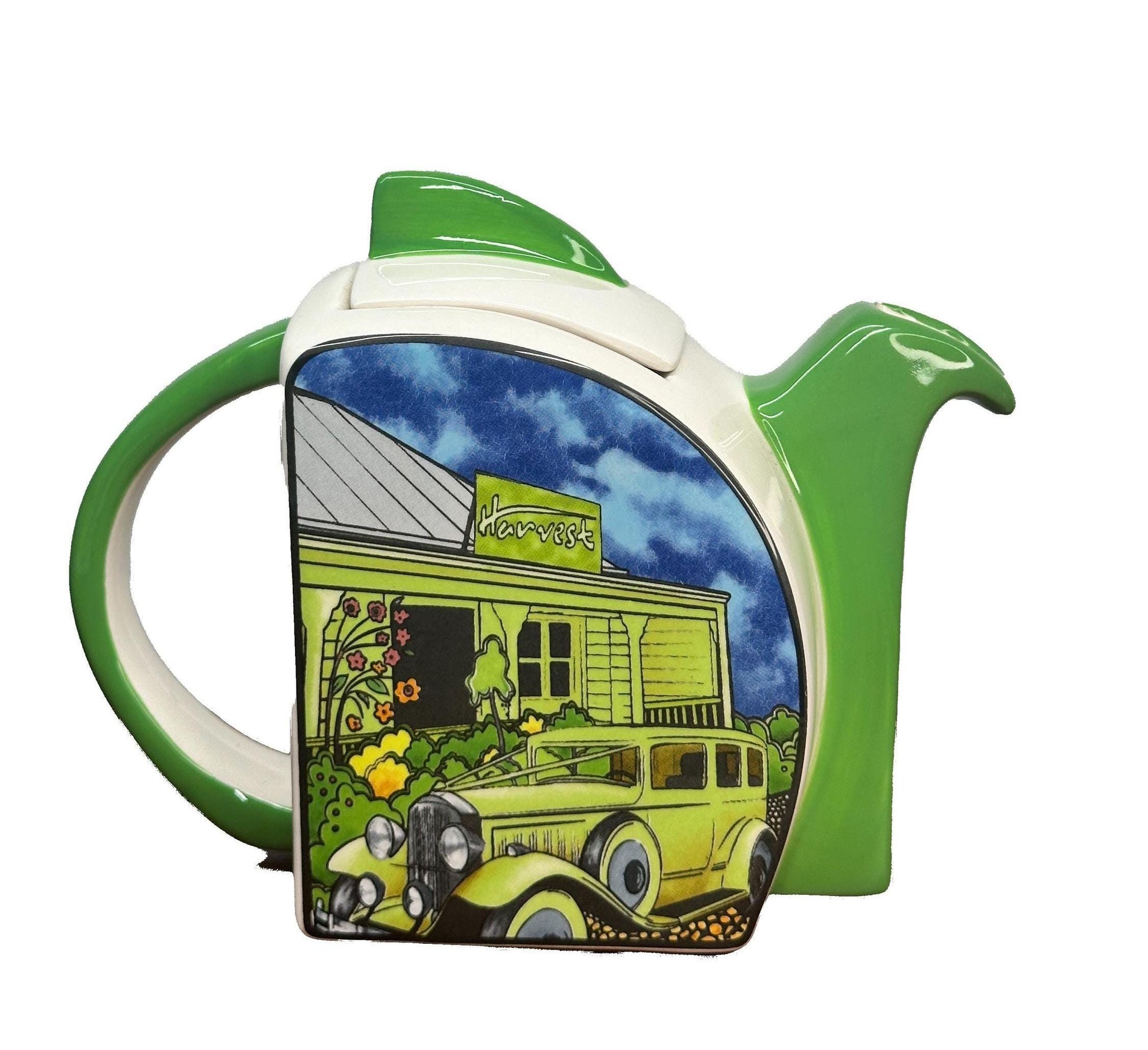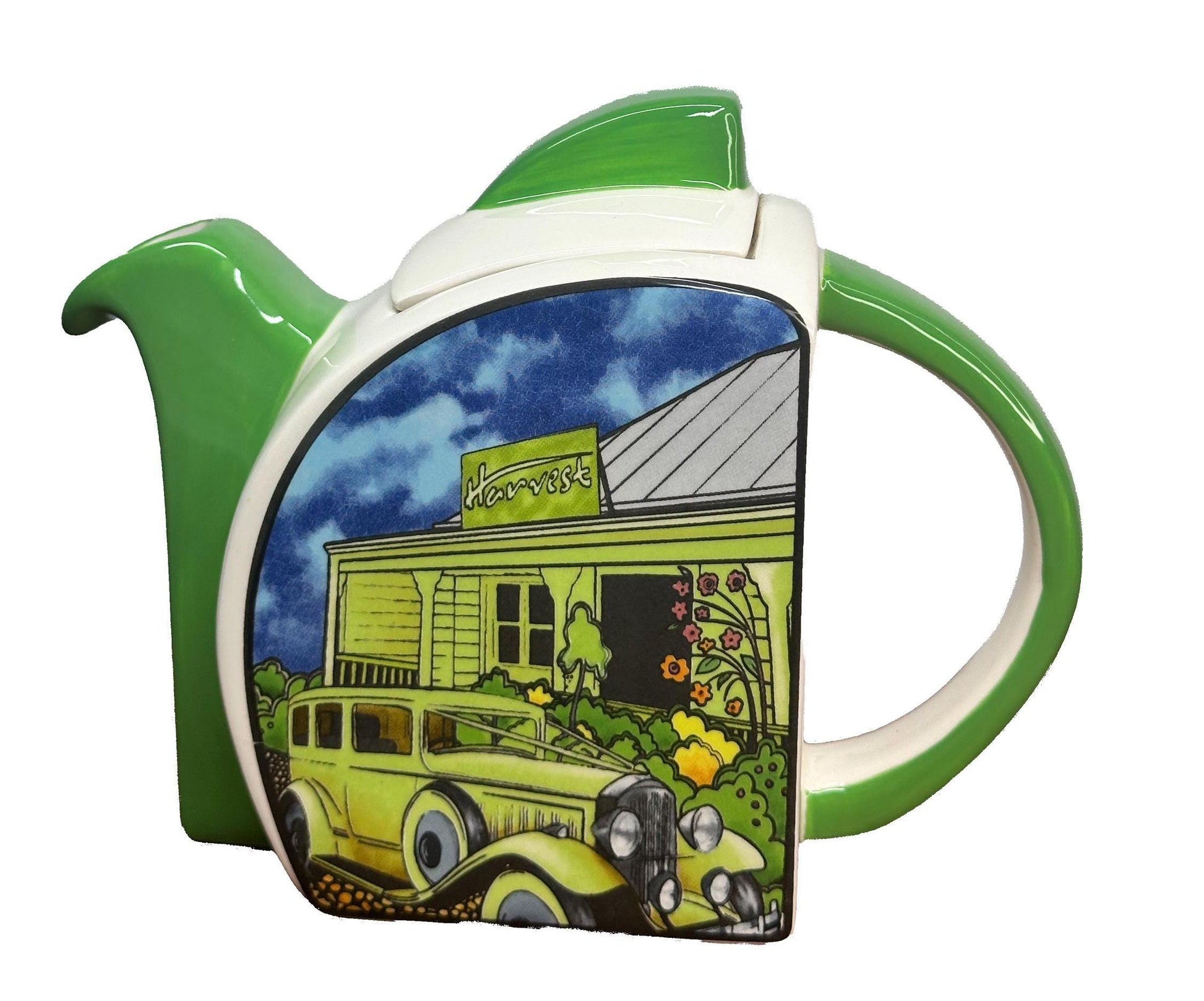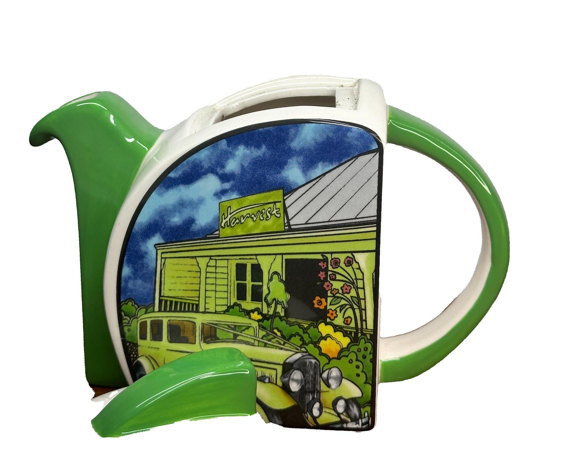 Sadly the world renowned Harvest Cafe in the small Byron Hinterland township of Newrybar is no longer, yet our small stock of Harvest tepots are available to be a forever memory of a magical time shared with friends at this iconic cafe. Crafted in exquisite fine Dehua Blanc-de-Chine porcelain, this upmarket model is a true masterpiece. With a hand-painted spout, lid, and handle, it's a work of art in pristine, 100% mint condition.